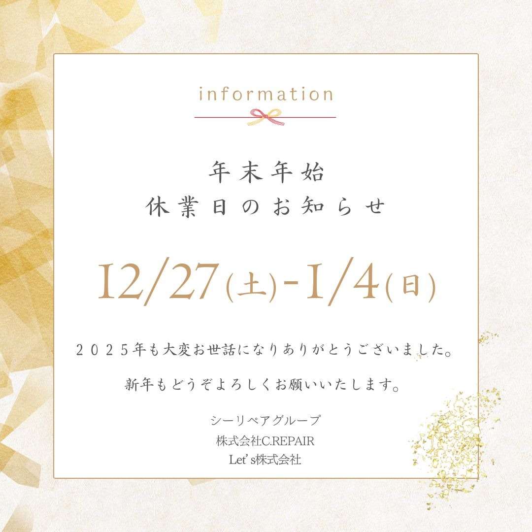 シーリペアグループ 冬季休業期間のお知らせ